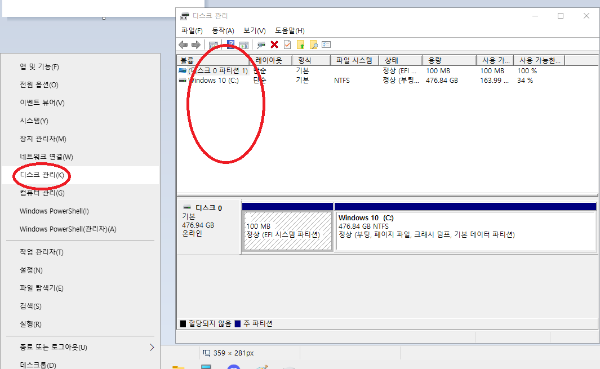USB가 탐색기에는 보이지 않지만, 컴퓨터에는 인식되고 있는 경우도 있다. 이럴 때는 ‘디스크 관리’를 통해 상태를 확인할 수 있다.